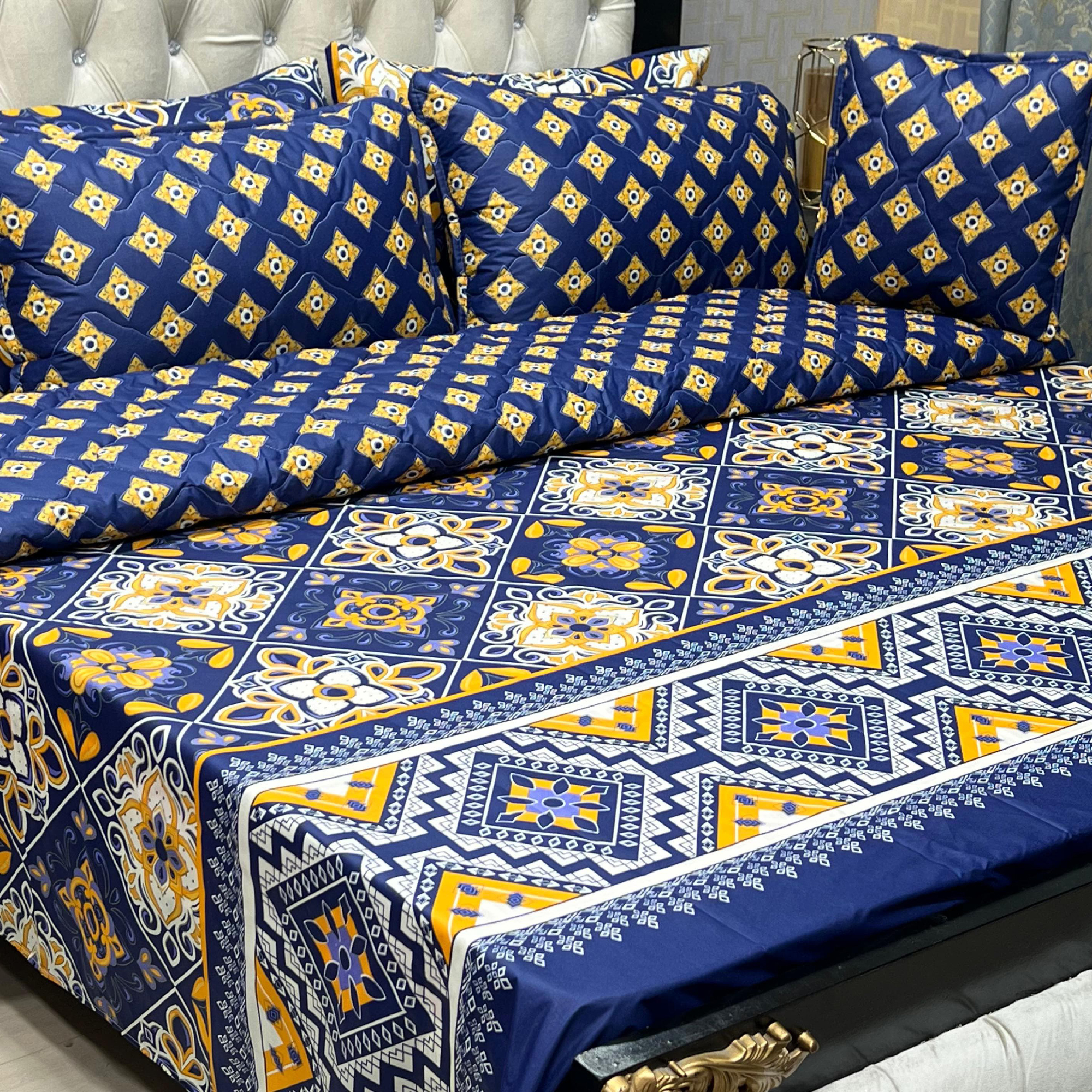 Explore our printed 07 comforter set with matching flat sheet. Enjoy comfort, style, and elegance. Elevate your sleep with high-quality, durable, and visually appealing bedding.