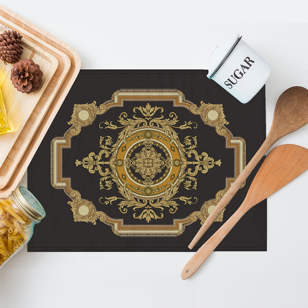 Experience the elegance of a digitally printed dining linen set, complete with custom-sized placemats to perfectly accommodate your dining capacity, accompanied by a complementary runner.